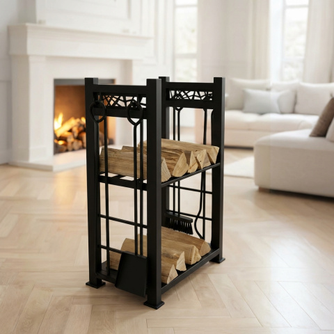 Дровница для дров и щепок создана из качественного металла в стиле лофт с полкой, а поскольку стиль лофт сегодня очень популярен, то она подойдет к любому современному интерьеру. Поможет поддерживать чистоту и порядок, а также безопасные условия для эксплуатации открытого огня.