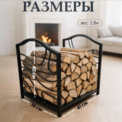 Дровница для дров выполнена из прочного металла, имеет устойчивую цельную конструкцию и выдерживает большую нагрузку. Компактные размеры позволяют разместить её рядом с камином, печью или в мангальной зоне, не занимая много места.