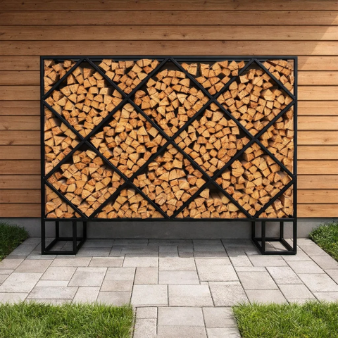Простое оригинальное решение в стиле лофт для уличного хранения небольших запасов дров.