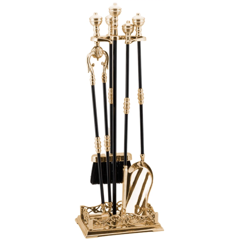 Каминный набор - изготовлен из латуни и чёрного никеля. Выглядит он дорого и стильно. Подойдёт в классический стиль интерьера. Сделан в Италии