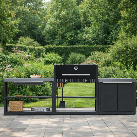 Широкий ассортимент модулей позволяет создать индивидуальный и удобный эргономичный дизайн специально для вас. Модули могут включать в себя рабочую поверхность, раковину, холодильник, шкафы для хранения продуктов и посуды, ящики для угля и дров, полки для специй и прочие удобства. Модули выполнены из высококачественных материалов, которые обладают не только прочностью, но и устойчивостью к влаге и солнечным лучам.