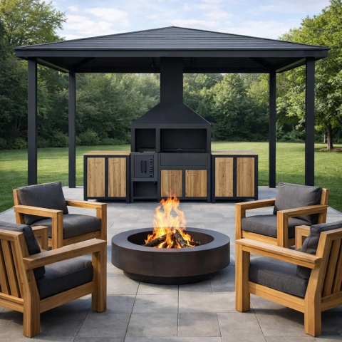 Погрузитесь в мир уютной и стильной атмосферы модульной мангальной зоной из металла. Этот функциональный комплекс идеально подойдет для вашего дома или дачи, как внутри помещения, так и на улице. При таком оборудовании приятно собраться вместе с друзьями, семьей, приготовить шашлык, плов и другие любимые блюда на огне и съесть все вместе.