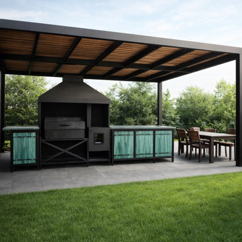 Простая современная модель рассчитана инженером конструктором, удобна для готовки и прослужит вам долгие годы. Мангальная зона лофт для дома и дачи из металла (мангальный комплекс лофт 24) имеет заводское качество, есть собственные цеха и инженер конструктор, и можем спроектировать дизайн под вас и реализовать. Фотографии есть еще в другом цвете и комплектации. Для расчета вашей конструкции нужно уточнит размер, материал фасадов, мойки, наполнение полок и т.д. Позвоните нам или напишите Ватсап.